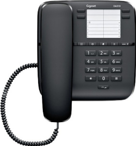 Gigaset DA310 - проводной настольный телефон. Он позволяет запрограммировать до четырех функциональных и десяти клавиш быстрого набора номера. Также этот телефон дает возможность выбрать одну из трех мелодий звонка и настроить их громкость. Можно даже полностью отключить звук, чтобы насладиться тишиной. Для повторного набора последнего набранного номера имеется специальная клавиша. Таким образом, Gigaset DA310 – это простой в использовании проводной настольный телефон со всеми необходимыми функциями.